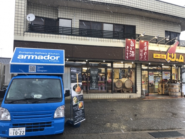 雪が降り続く天候でしたが、キッチンカーアルマドールがデビューしました。